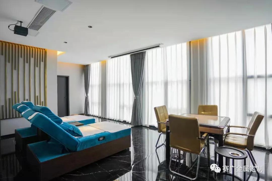 昆明沐海棠是賽廣2021年底竣工足(zú)浴場所(suǒ)項(xiàng)目,現已(yǐ)正常運營。設計中包含了金屬不鏽鋼線條,屏風(fēng),各類金屬(shǔ)櫃體等。不(bú)鏽鋼經過處理後,特性是耐腐蝕,耐鏽,非常適合類(lèi)似濕度較大的裝修場所。