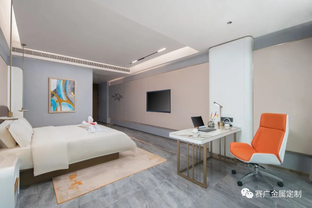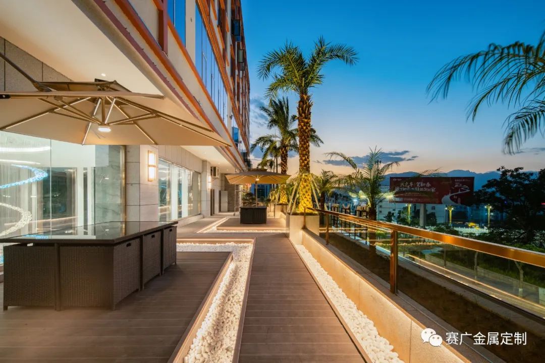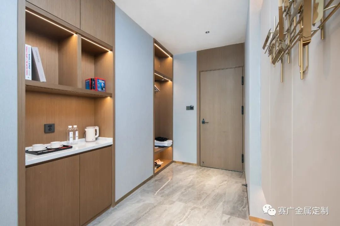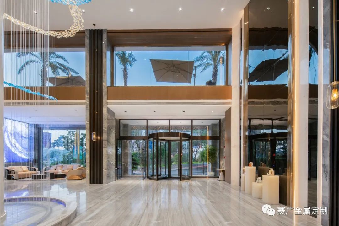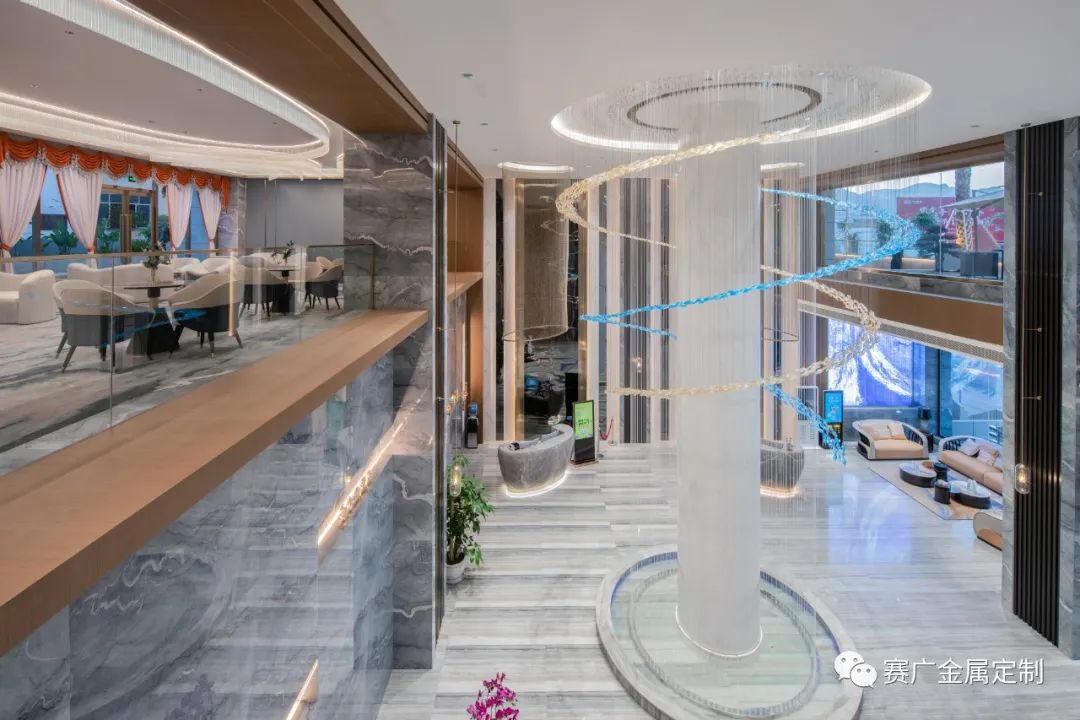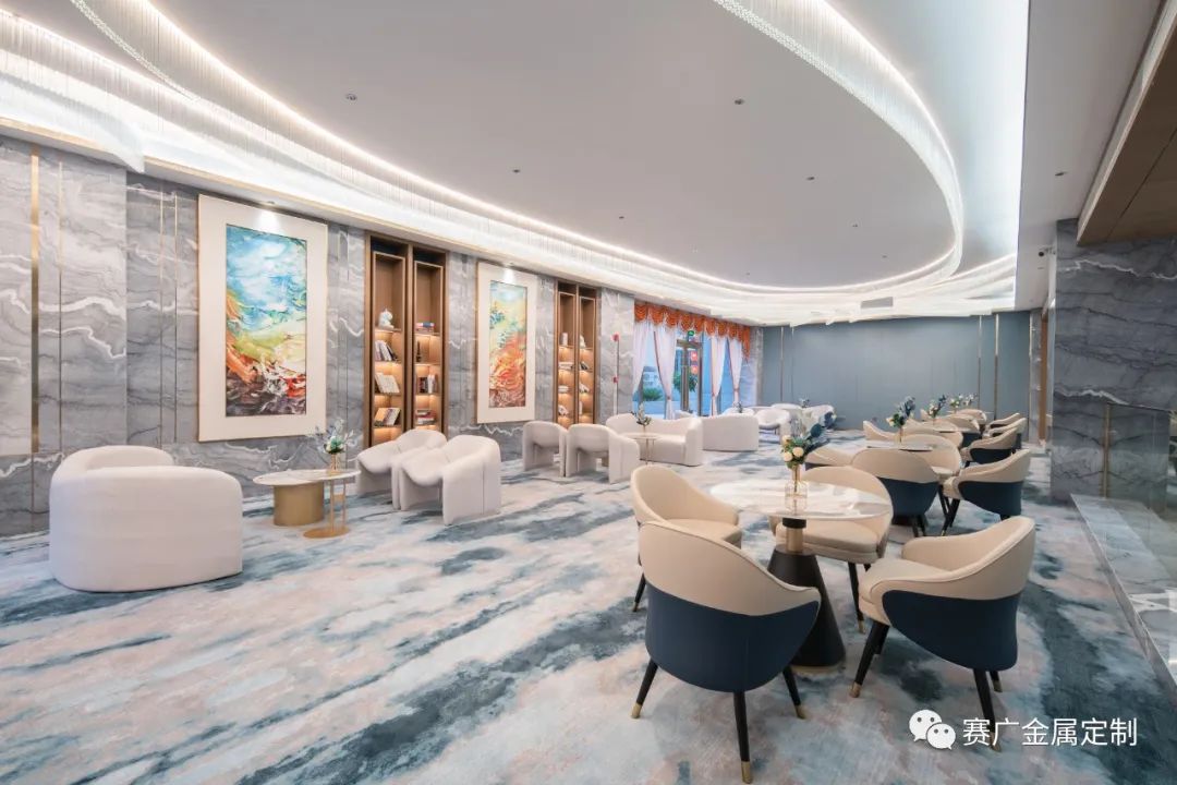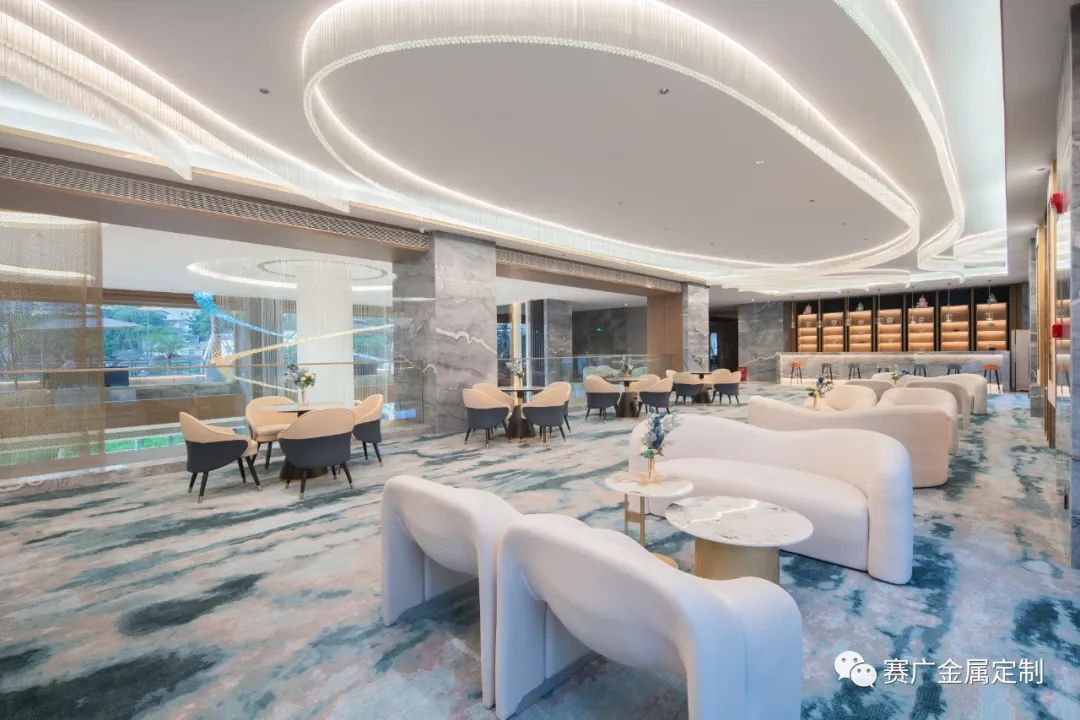 賽廣.京豐(fēng)源不鏽鋼自成立(lì)以來,前後參與了70餘家酒店金屬部分的裝飾裝修,其(qí)中龍禧酒(jiǔ)店位於昭通巧家,是賽廣金屬2022年7月完工的(de)一家酒店裝修項目(mù),總(zǒng)金(jīn)屬造價100萬餘元,包括酒(jiǔ)櫃、屏風、茶幾(jǐ)、鏡子、各區域線(xiàn)條、包板,藝術玻璃等。