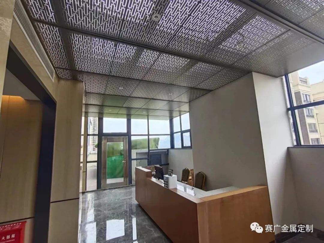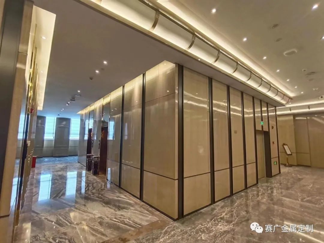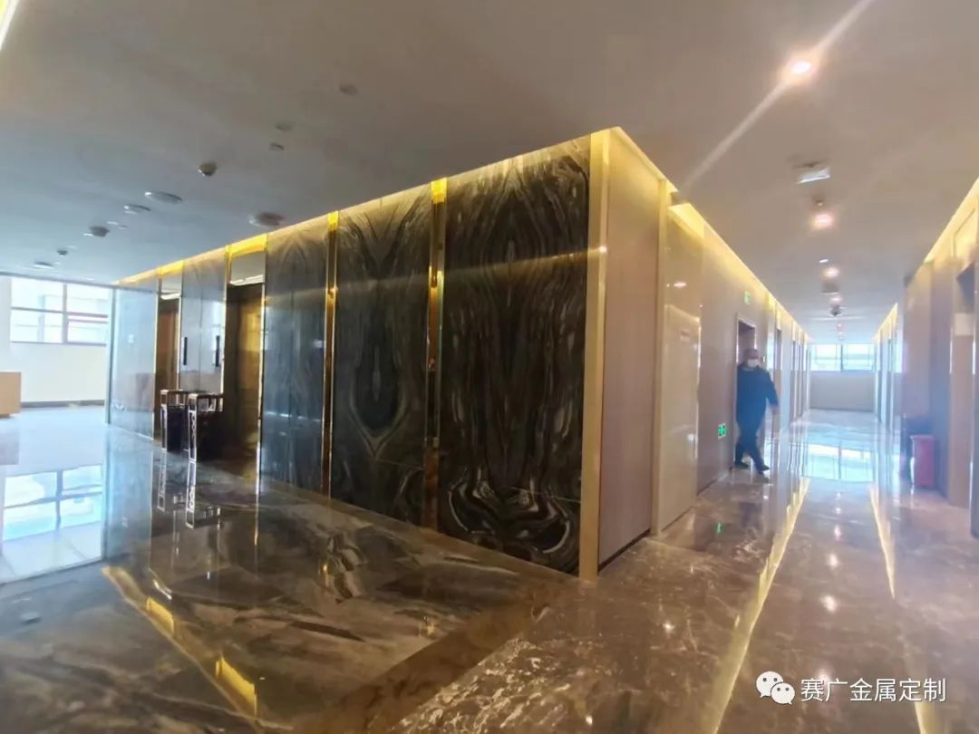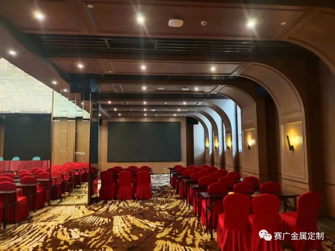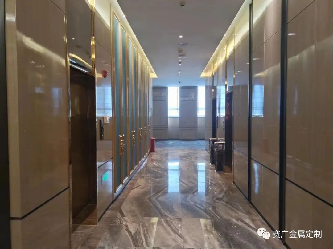 昭通海能酒店是雲南賽廣金屬2022下(xià)半年參與裝飾建設(shè)的一(yī)個酒店類項目,該酒店從承建規模到裝修檔(dàng)次在當地都頗有知名度。酒店裝修整體(tǐ)以中式輕奢風格為主,大量采用香檳金色、玫(méi)瑰金色的金屬勾勒線條,使華麗的效果更為突現。