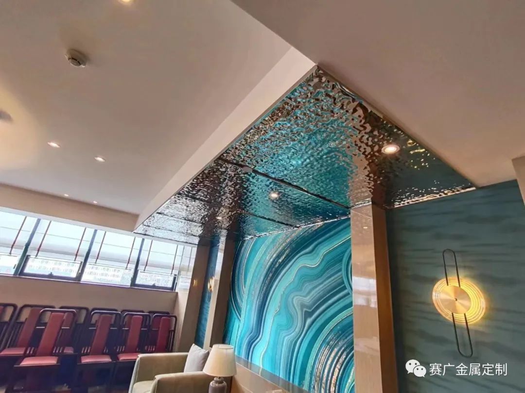 金屬最大的特點是(shì)色彩豐富(fù)的同時,可以很好的與燈光融合折射,效果(guǒ)事半功倍,覆蓋麵大,氛(fēn)圍感突出。