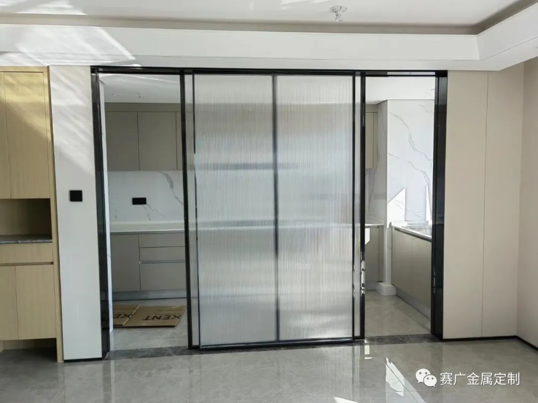 金(jīn)屬(shǔ)線條的門框簡易、硬朗,同(tóng)時相對於過(guò)道中,更為實用,不易破損。
