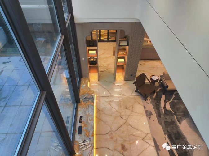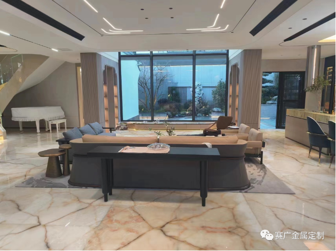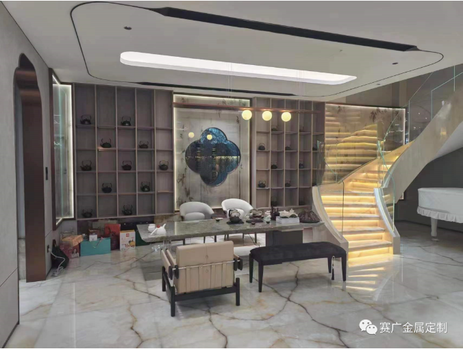 楚雄院子別墅是2023年賽廣完工的第一個別(bié)墅案例,其位居中央(yāng)景觀帶,坐擁山湖勝景,享超卓園林之美,已然成就花(huā)園(yuán)的風景(jǐng)樣本。家住楚雄院子,就是把家搬(bān)進公園裏,浪(làng)漫詩意的生(shēng)活就在眼前。裝修整體運用東方美學詮釋現代生(shēng)活,返璞歸真,營造(zào)國風意境。有金屬的參與,使得整(zhěng)體效果更加完(wán)美,既舒適又有質感,價值與客戶需求緊密貼合。此項目中(zhōng),賽廣參與其入戶門、樓梯、屏風、壁龕及各區域包板及線條(tiáo)建(jiàn)設。