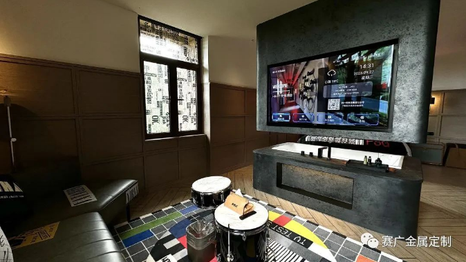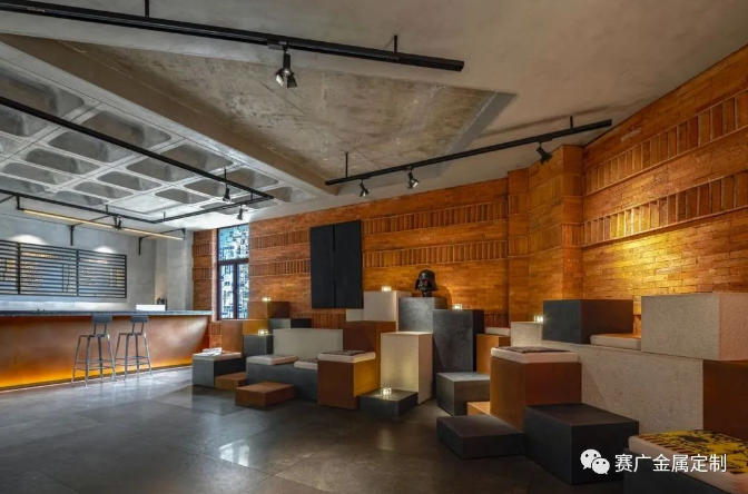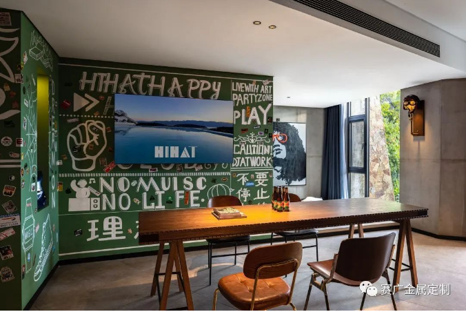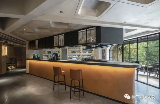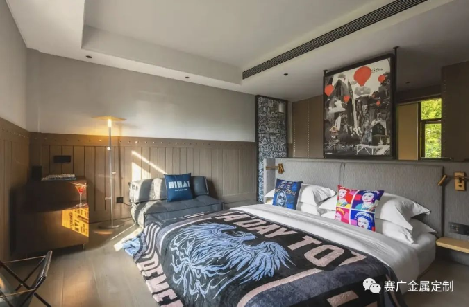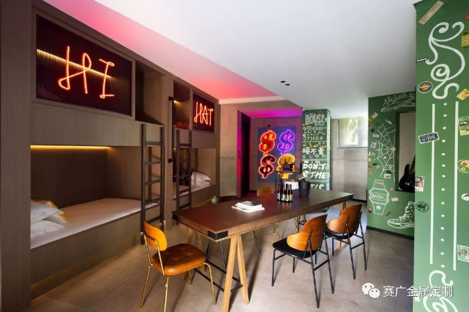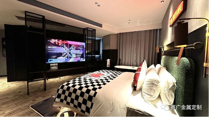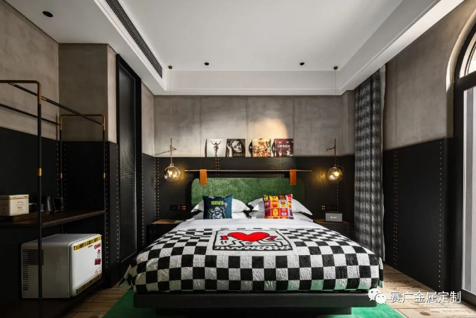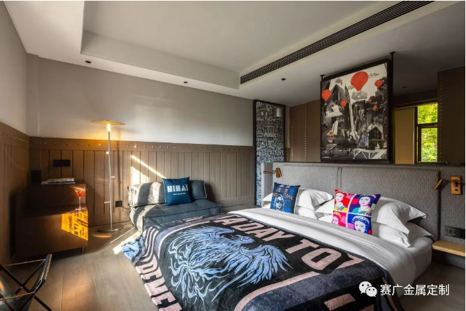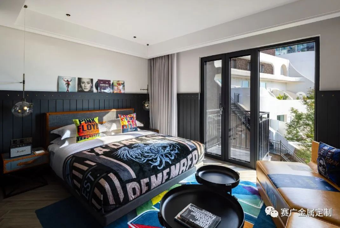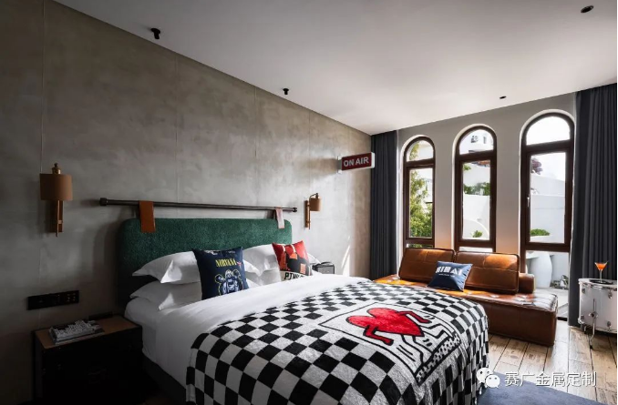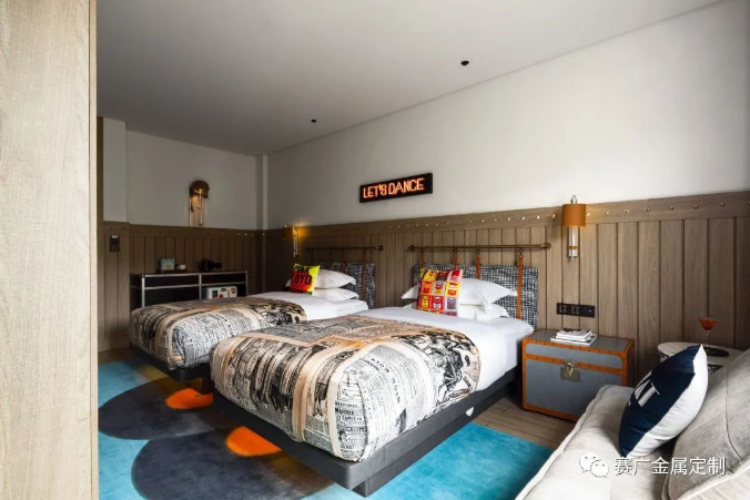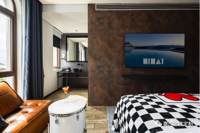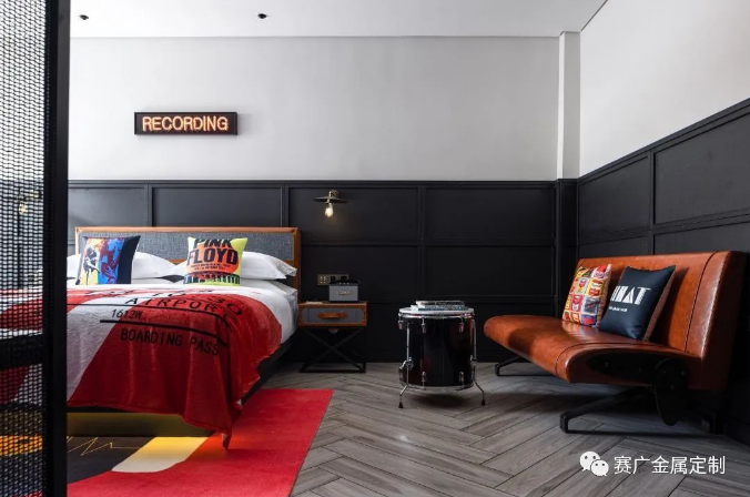 酒(jiǔ)店運用大量金色及深棕色(sè)不鏽(xiù)鋼金屬製品,與搖滾元素交相呼應,彰顯古典韻(yùn)味(wèi)。
