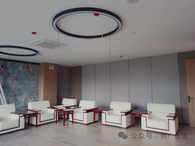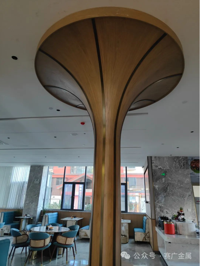 大廳的金屬屏風,鏤空的(de)豎(shù)管設計搭配異形的包板,既(jì)保證了隱私,又保證了空(kōng)間的通透性。