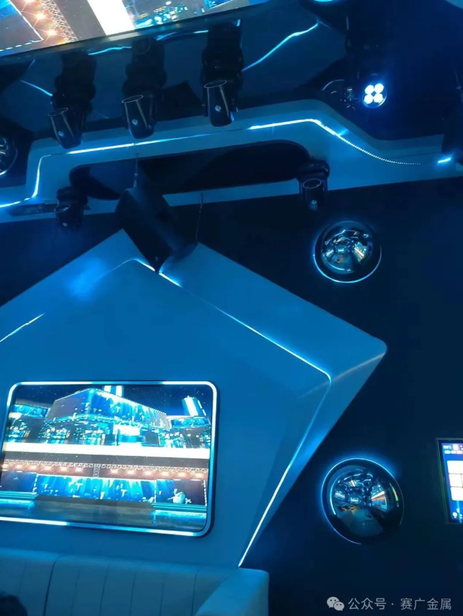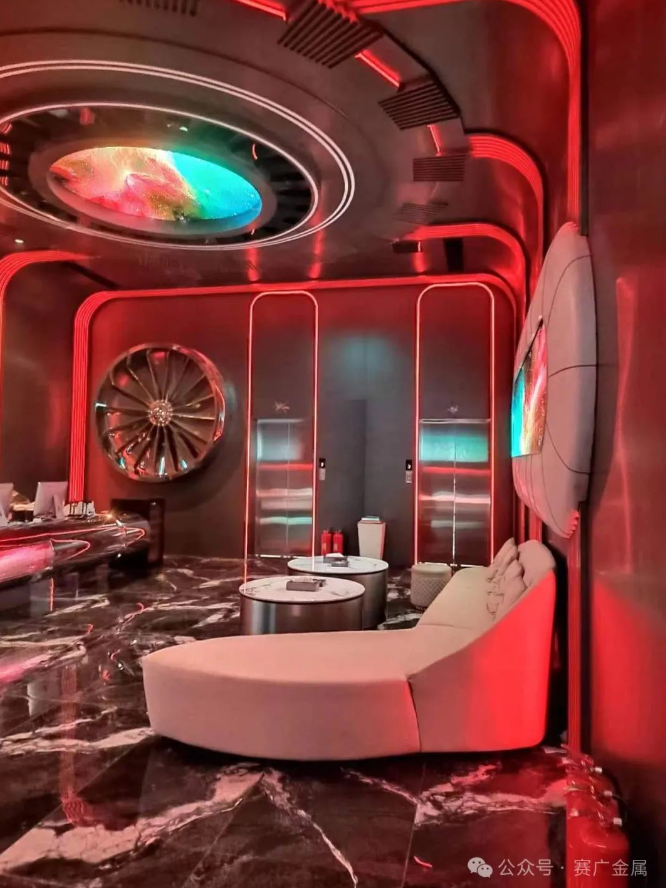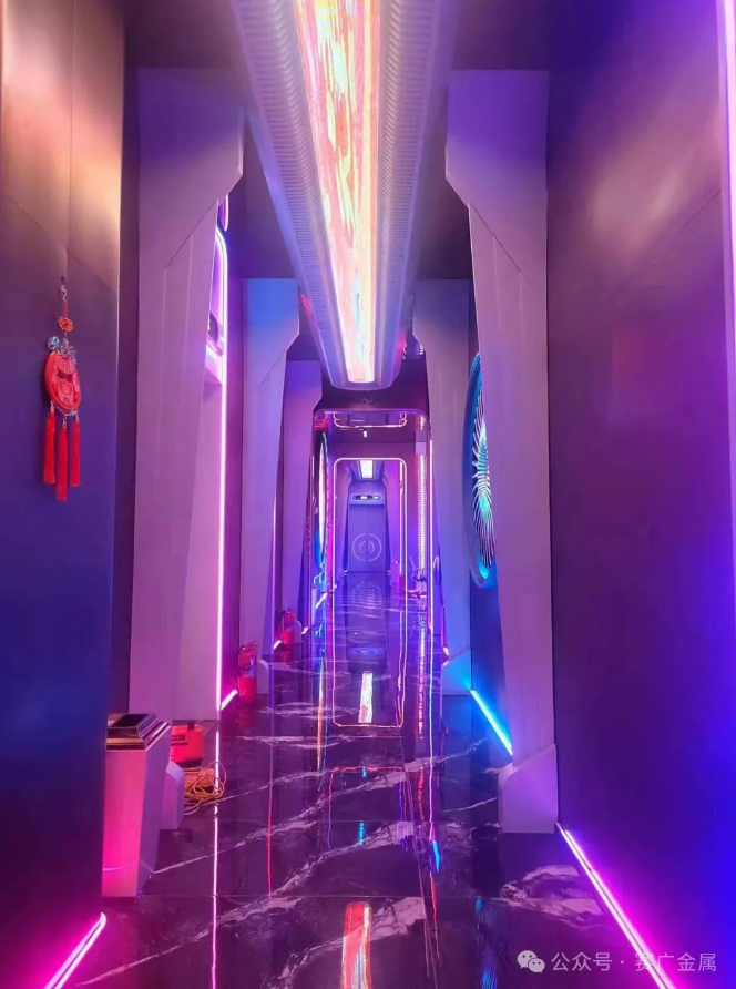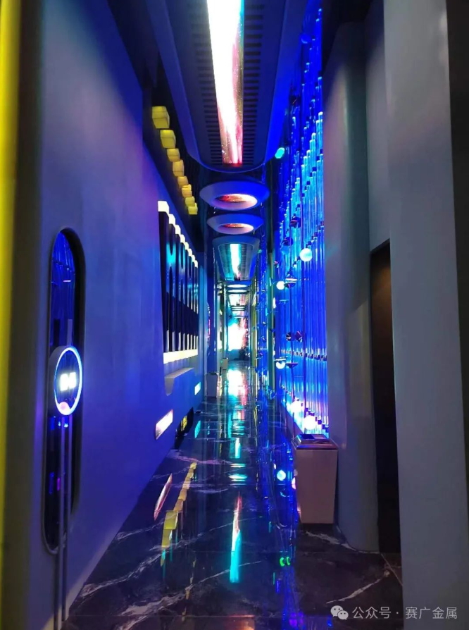 工業感的金屬(shǔ)色金色(sè)銀色,鮮(xiān)豔的原(yuán)色如藍色、紅色、桔黃色等,金屬在各色燈光的照(zhào)射下,仿佛進了個時空隧道,用高端現代化的設計搭配智能高科(kē)技,營造出(chū)奢華而又極(jí)具(jù)科技感的娛樂空間。