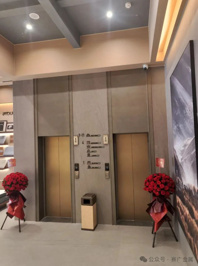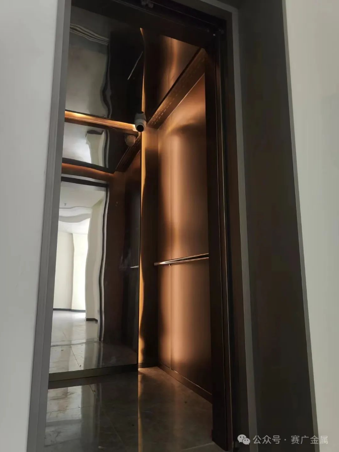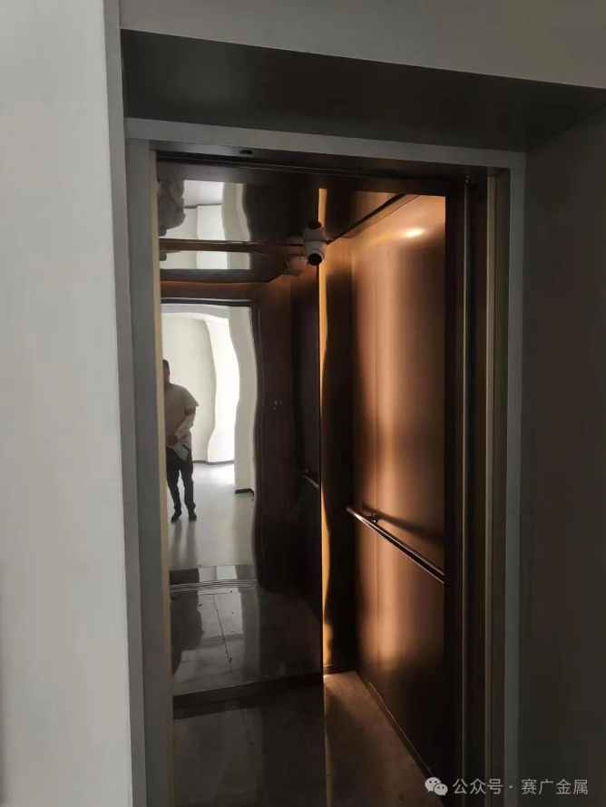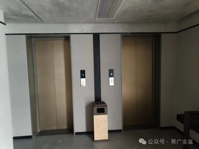 香檳(bīn)金色電梯轎廂包板營造出寧靜與淡雅的高級氛圍,給人一種簡約莊(zhuāng)重大氣的感覺。