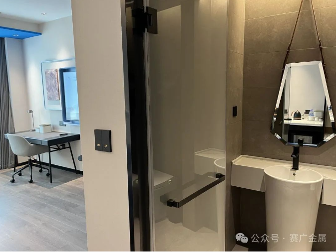 夾絲玻璃隔斷在酒店裝修中運用極(jí)其廣泛,呈(chéng)現出若即若離的即視感(gǎn),不(bú)鏽鋼線條也是恰到好處的裝飾了空間,既實用(yòng)又美觀。