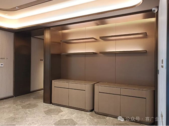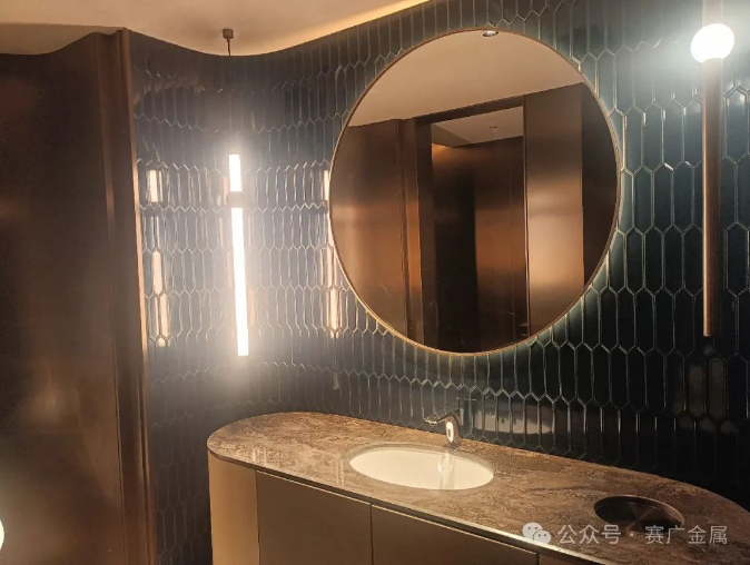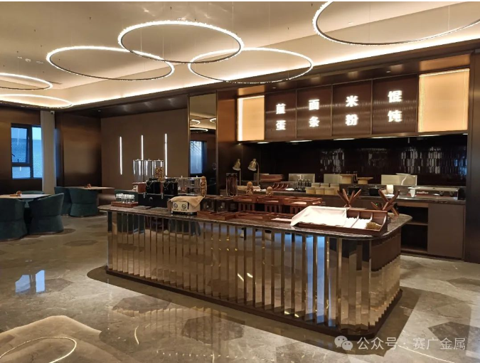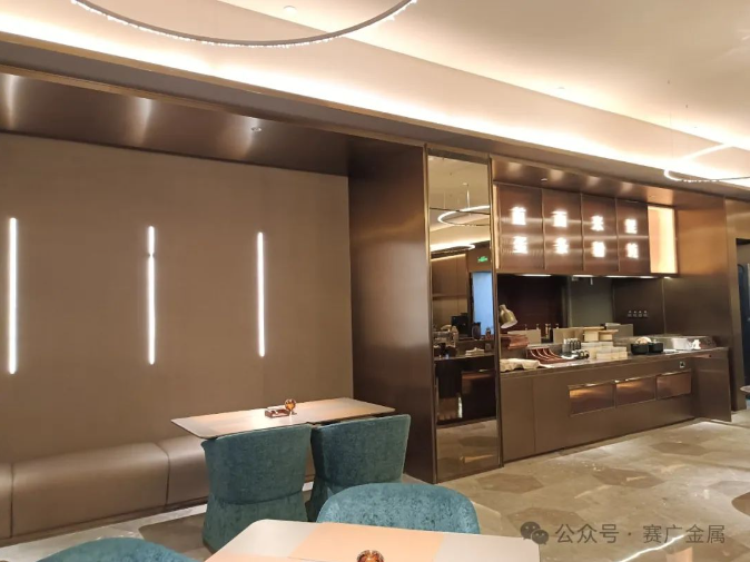 深色不鏽鋼(gāng)給人一種精致、奢華的(de)視覺感受,其獨特的金屬光澤在不同的燈(dēng)光映照(zhào)下,明暗相交,成為視覺(jiào)焦點。圖片
