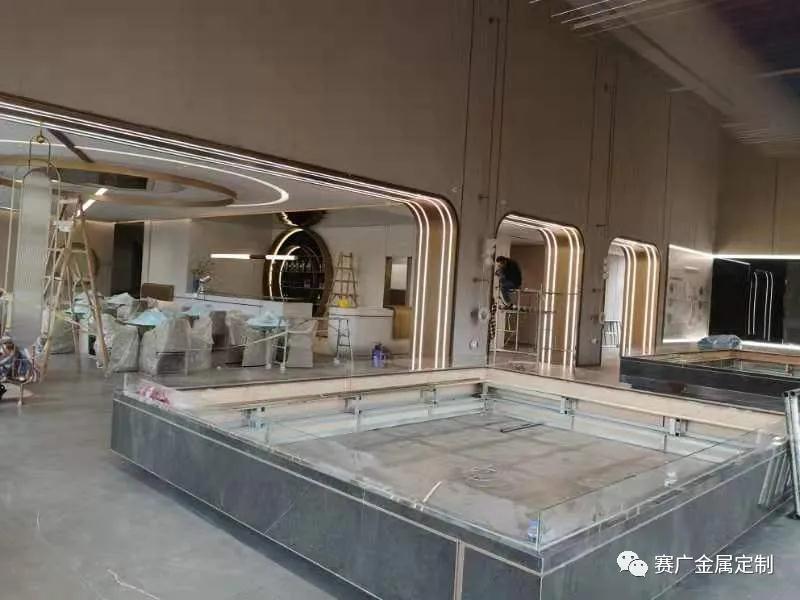 位於昆(kūn)明的大華錦繡山海售樓部經過工(gōng)人們數日努力,內部裝修大體完(wán)成,雛形初現(xiàn)。多個金屬異形,弧度加入,讓整(zhěng)個現場(chǎng)不單一,質感(gǎn)體現更為現代。光帶流暢的線條及各類金屬造型相輝映,無不流露出簡約輕奢的美感。