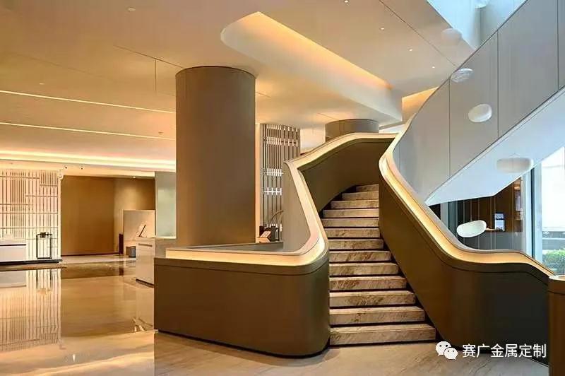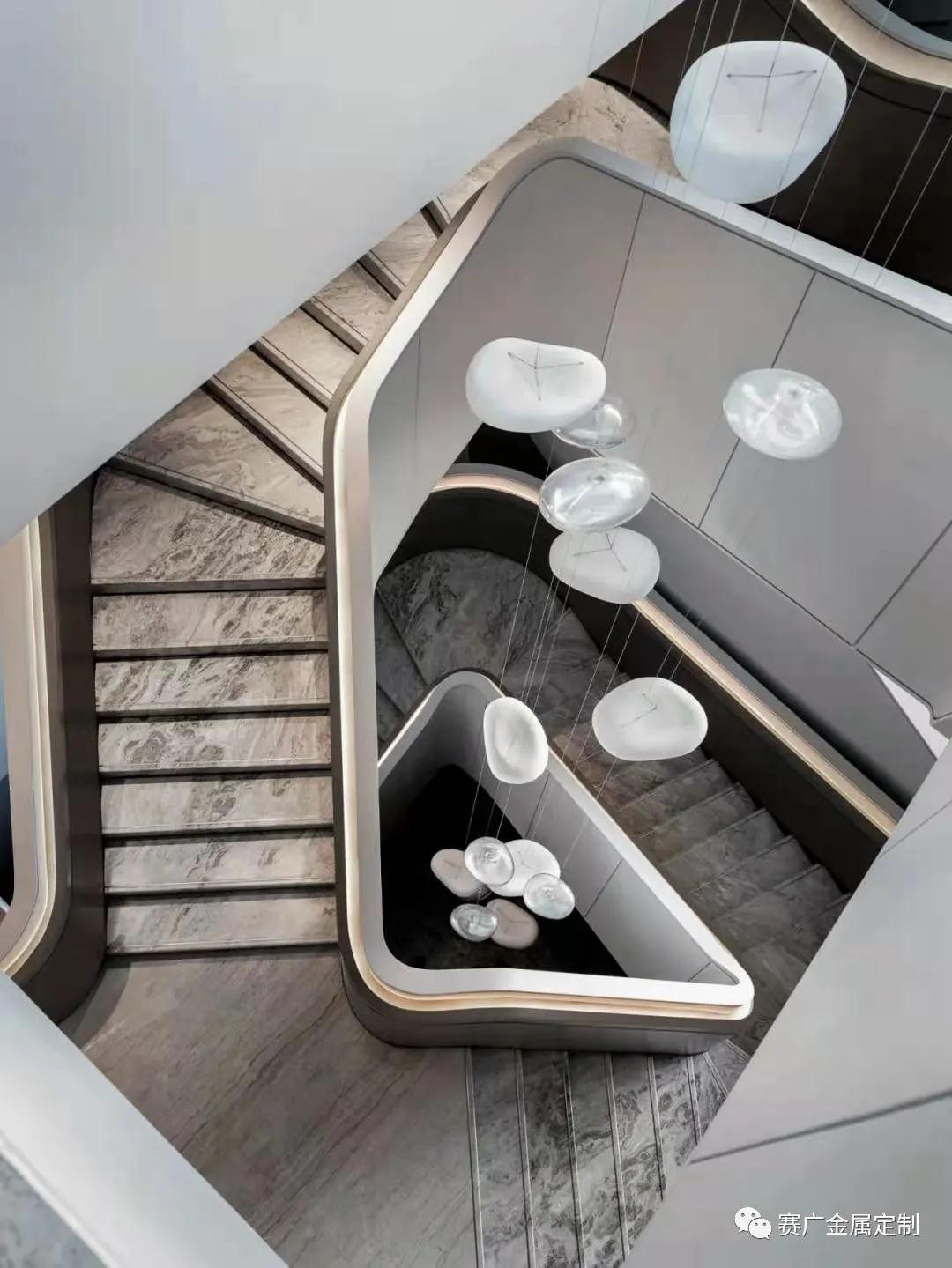 大堂樓梯間的設計也(yě)別有洞天(tiān),蜿蜒曲折的的樓梯,懸掛的白玉色燈體,置身其中仿佛就在竹林河邊趟石過溪(xī)一般,好不樂趣。