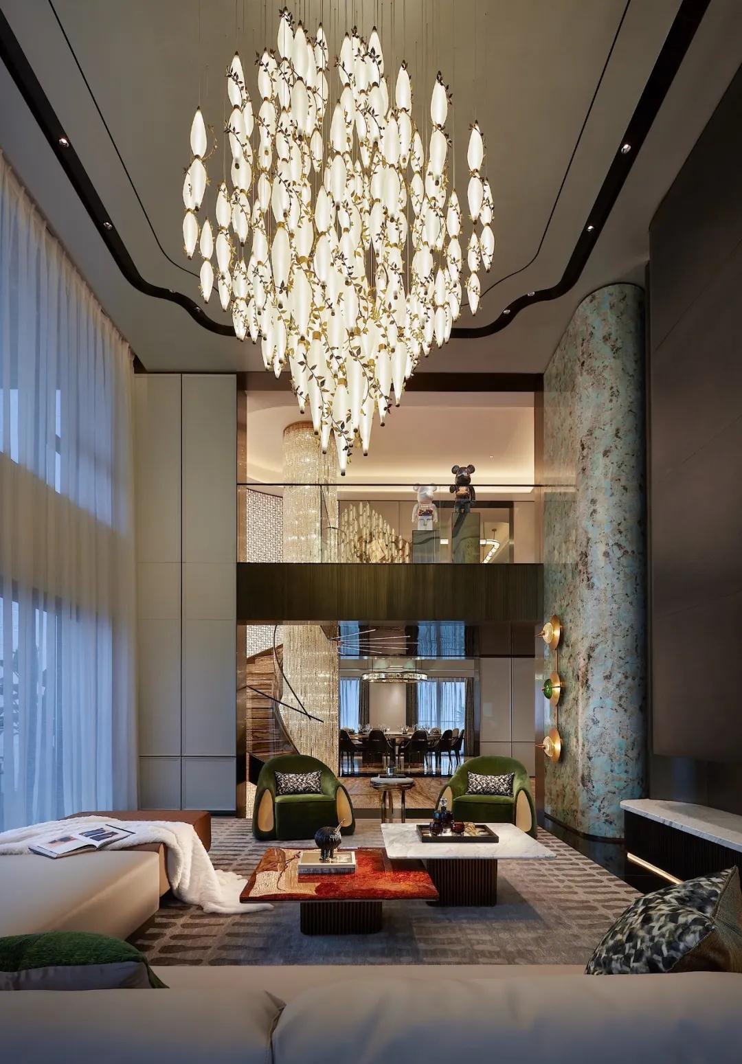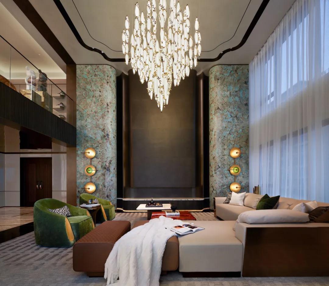 昂貴的亞馬遜綠奢石(shí)和複雜的工藝,遵循西方(fāng)建築設計藝術理念,與金屬、水晶做呼應,兼具功能主義和美觀性;同時以曲麵處理,延伸(shēn)自然色彩、元素、紋理,將(jiāng)東方意境中的空靈、輕柔呈現,從宏觀角度感受無與倫比的建(jiàn)築創意(yì)和奢華感,以細節表達微觀思維的藝術性、舒適性。