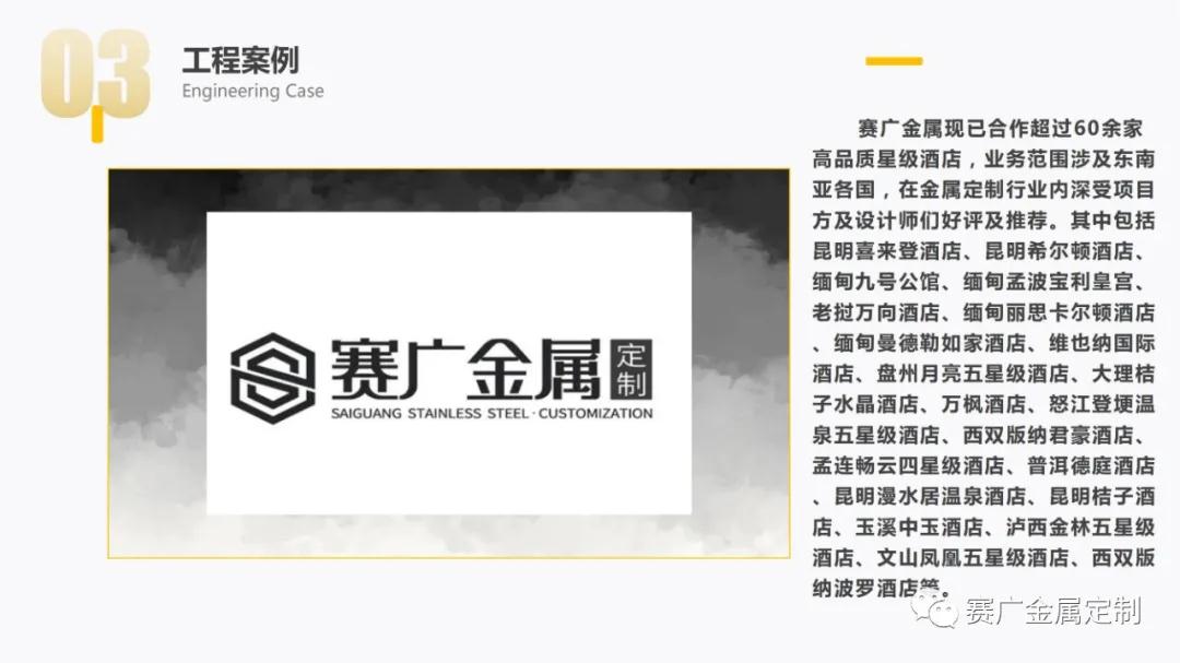 賽廣金屬(shǔ),一家致(zhì)力於成為金(jīn)屬裝飾行業(yè)標(biāo)杆的高端定製企業(yè)!
