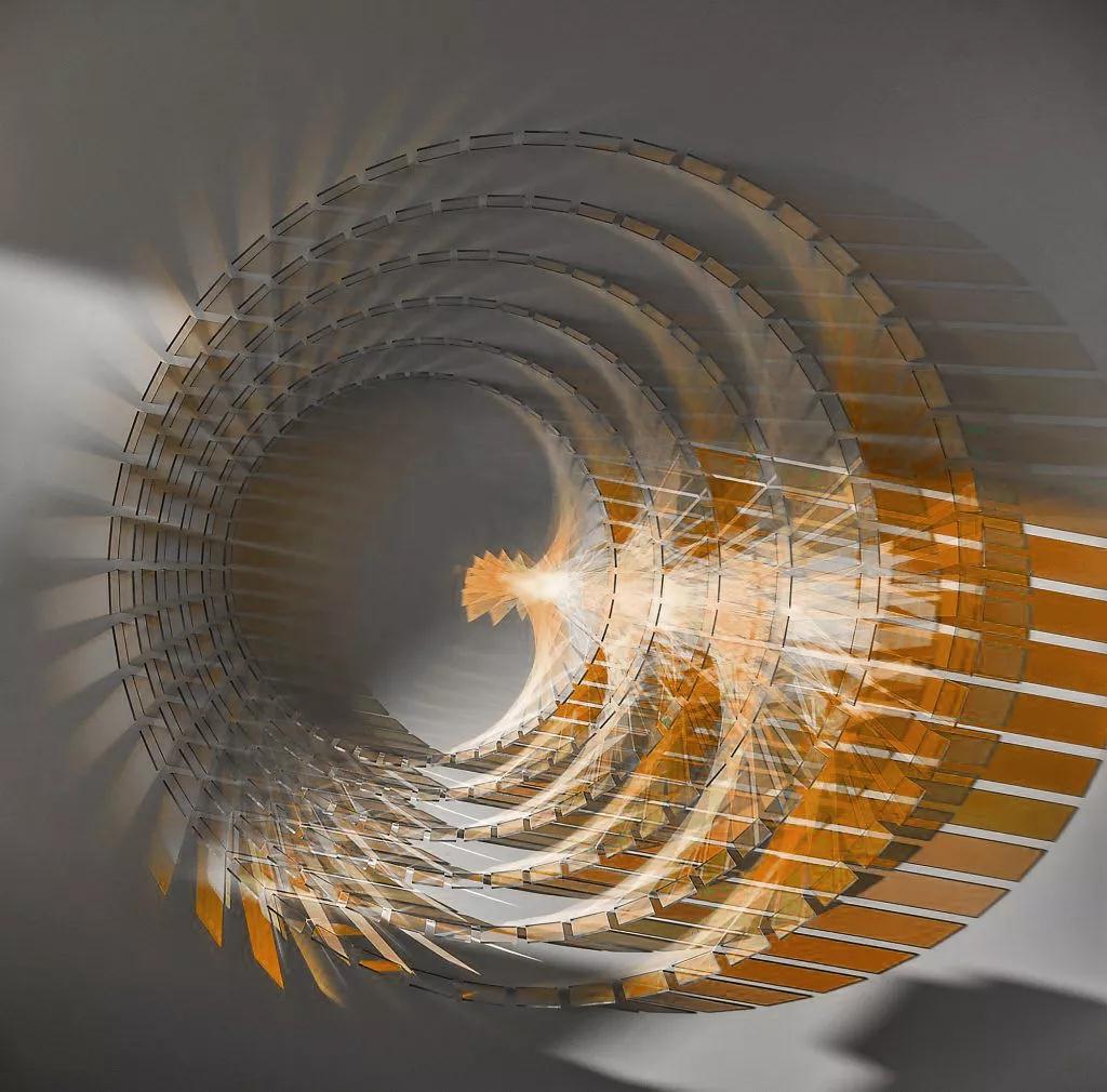 思(sī)考你在空間的位置。引力裝置被設計在沙(shā)盤之上,與空間的互作用力使它形成能量,擺脫引力懸浮於半空。在虛空中迸發(fā)的粒子演變出全(quán)新維度,以盤桓的本質進行一次又一(yī)次的聯結。