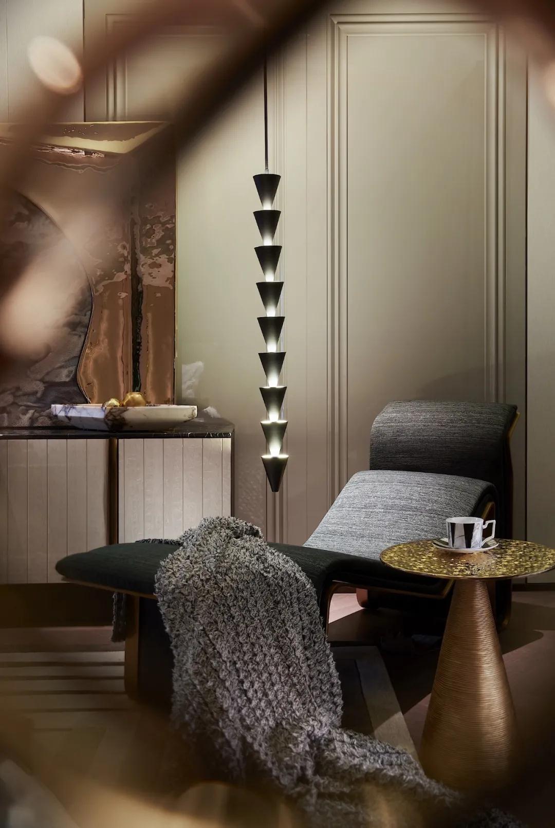 當居(jū)住者從絢麗的樓梯盤旋而上,走向另(lìng)一個空間時,巨大的視覺、氛圍轉(zhuǎn)折,又會帶給身心另(lìng)外一種儀式感和(hé)力(lì)量。