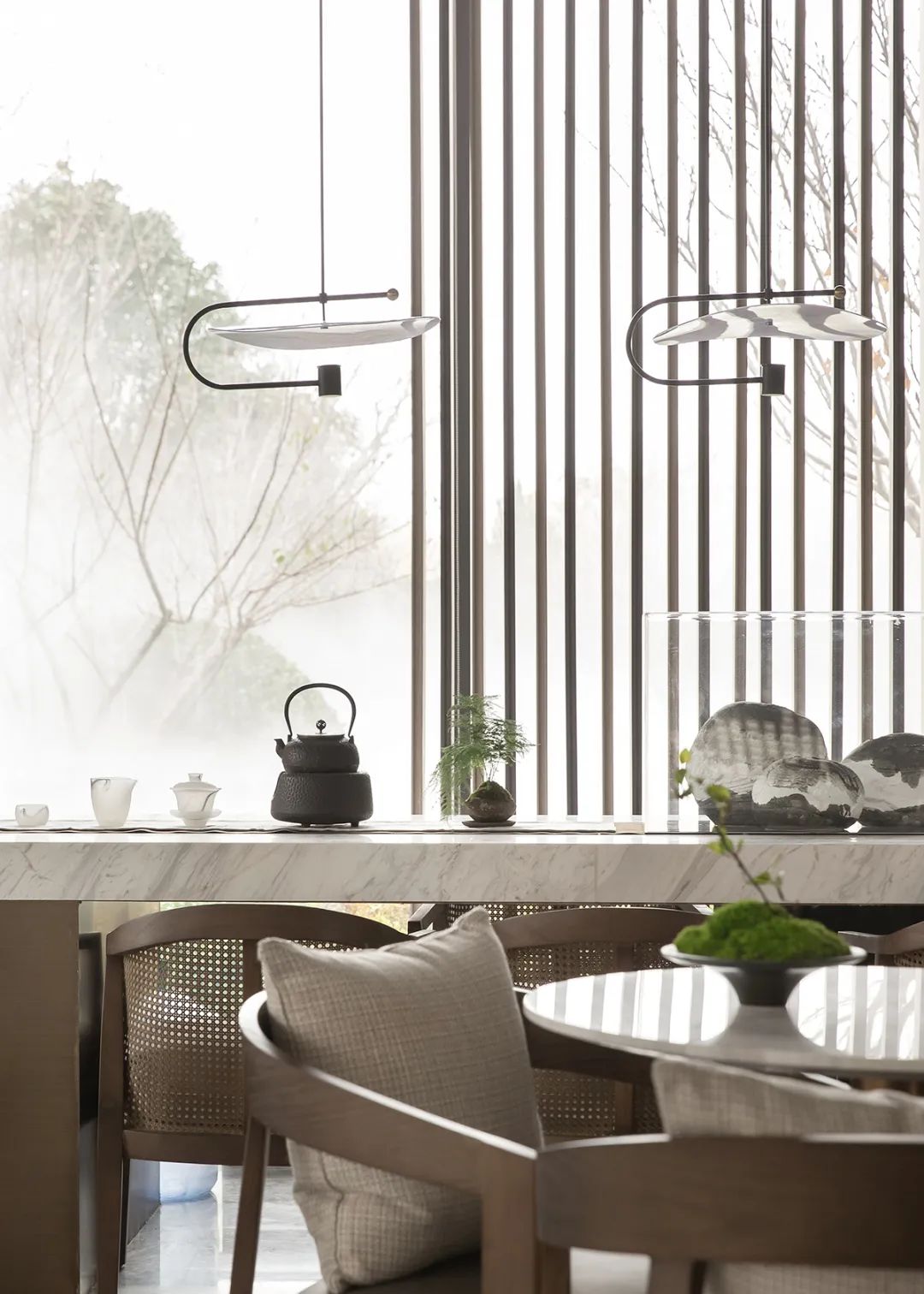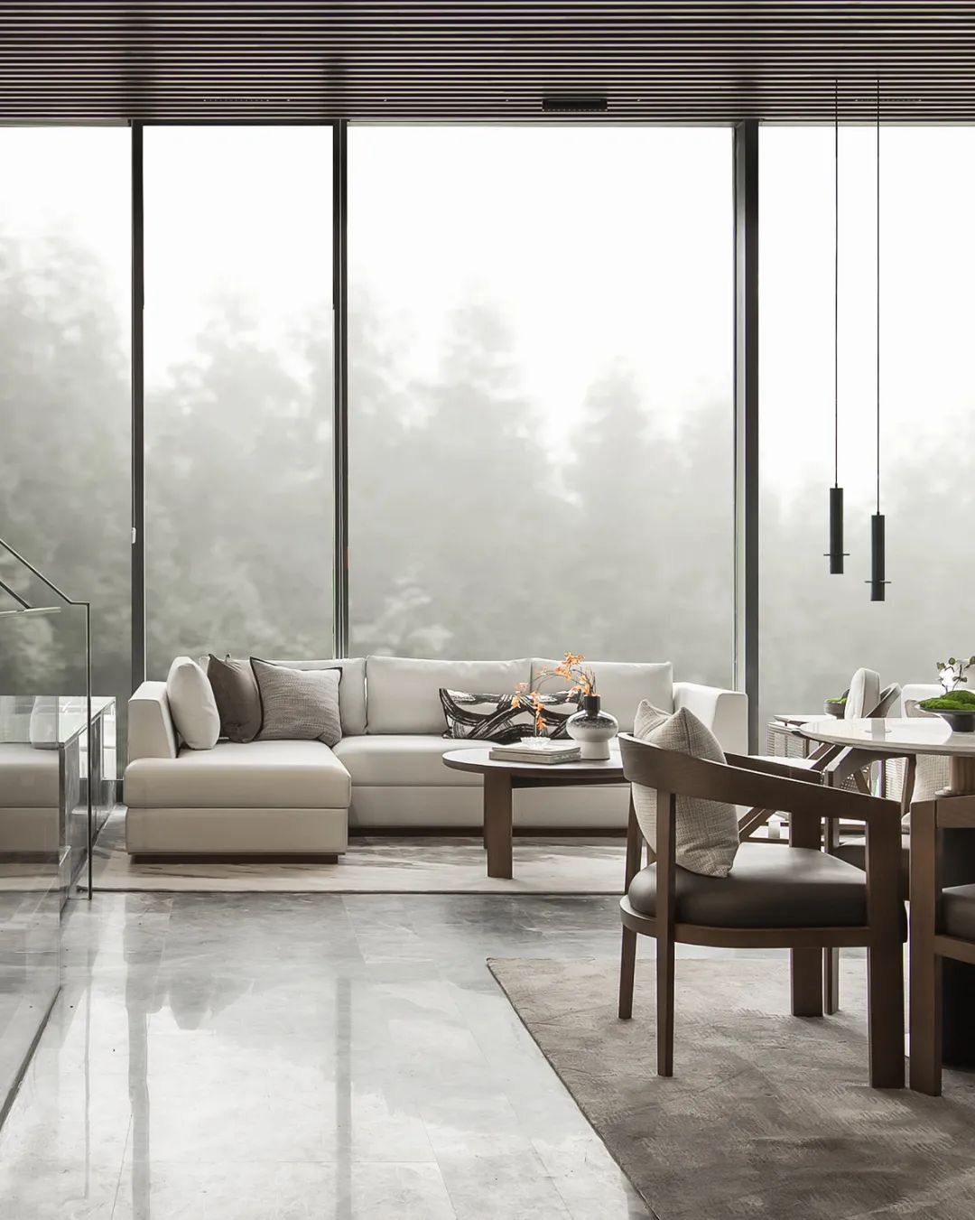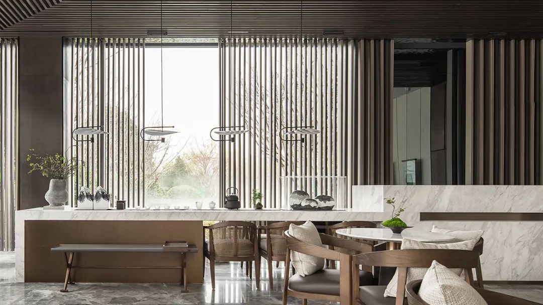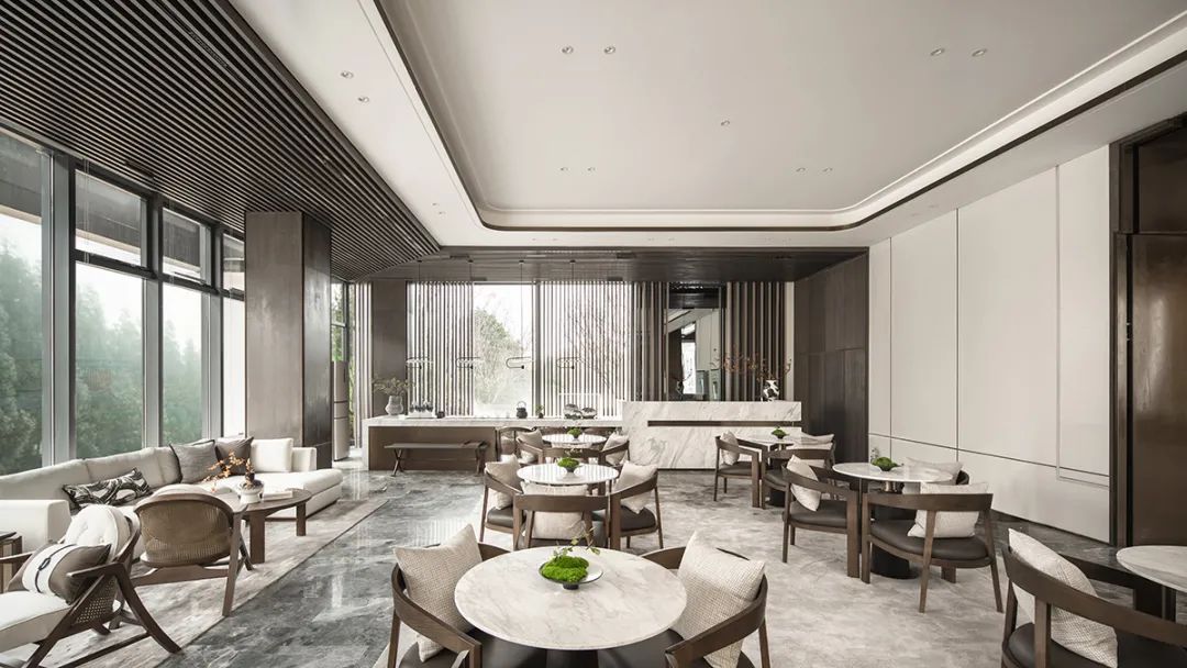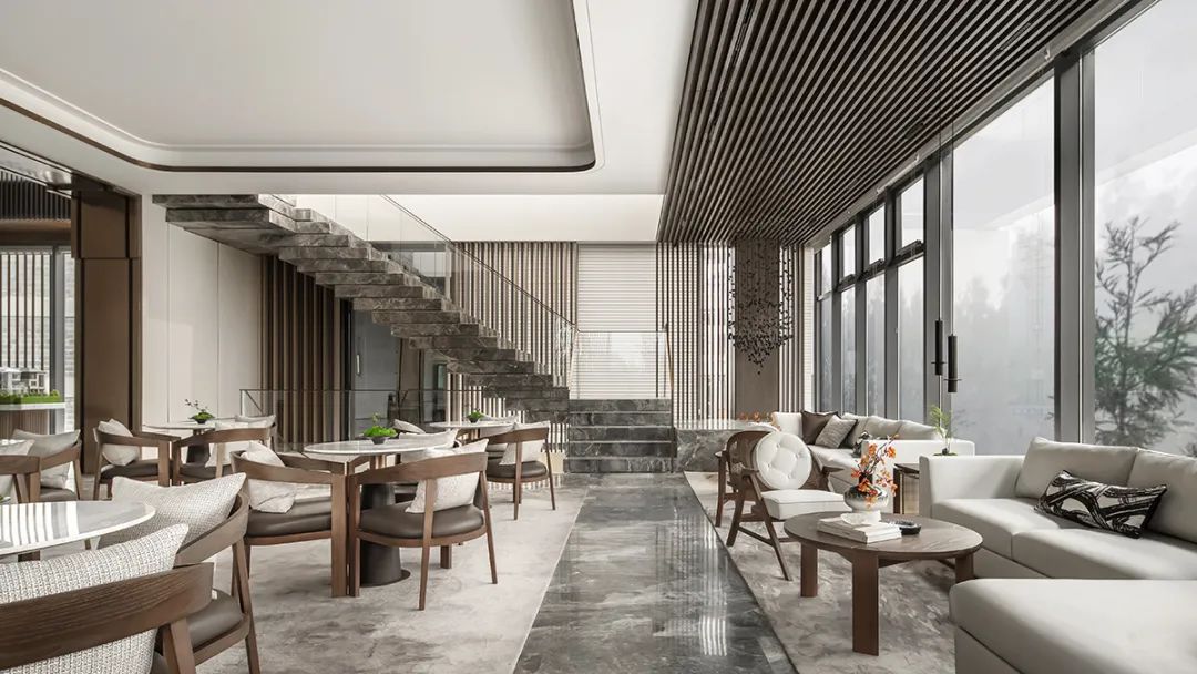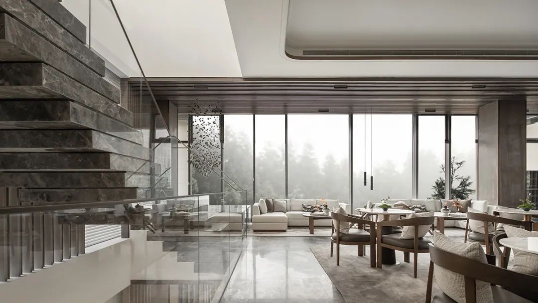 透過玻璃幕牆,最(zuì)大程度引(yǐn)入自然光線,極目遠(yuǎn)眺,飽覽(lǎn)山之(zhī)綠,坐擁水之(zhī)秀。將取於自(zì)然的(de)元素化(huà)為極具美(měi)感的線條與體感,賦予空間現代與傳統(tǒng)交融並濟的融(róng)合氣質。