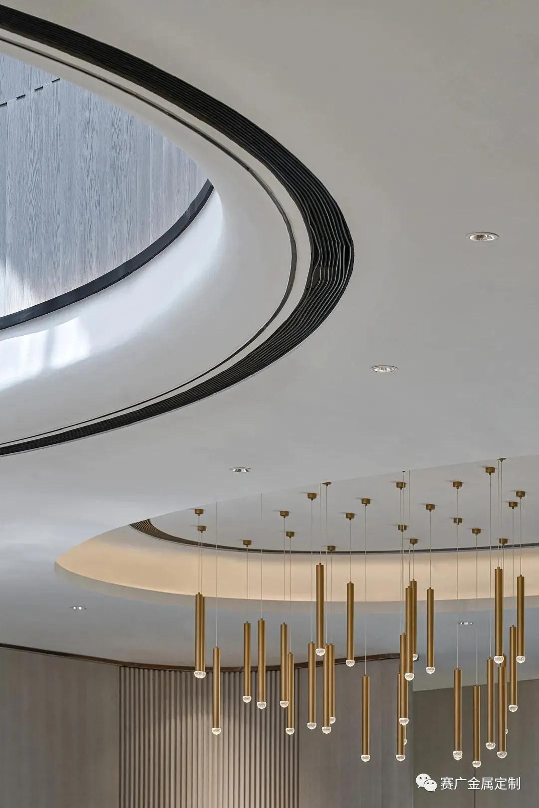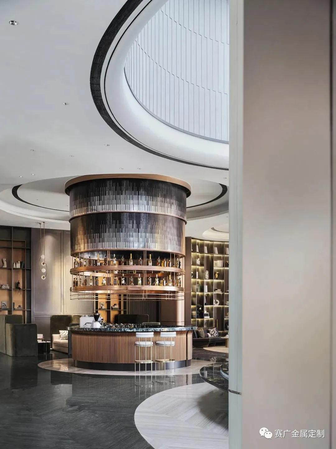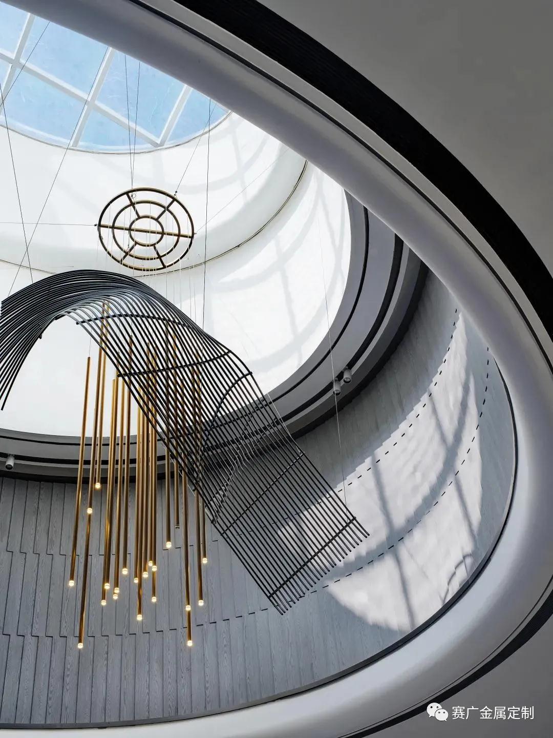 錯落有致的金屬板背景牆賦予(yǔ)空間張力,船型接待台(tái)置於一側,仿佛能看到這座城市中經年累積的海港(gǎng)文明在此上演,將身臨其境的人塑造為時(shí)間的體驗者,以設計語匯勾(gōu)勒即將綻放的美(měi)好生活。