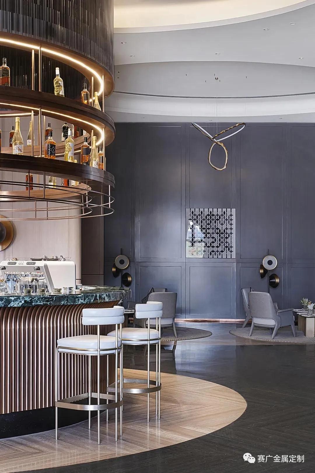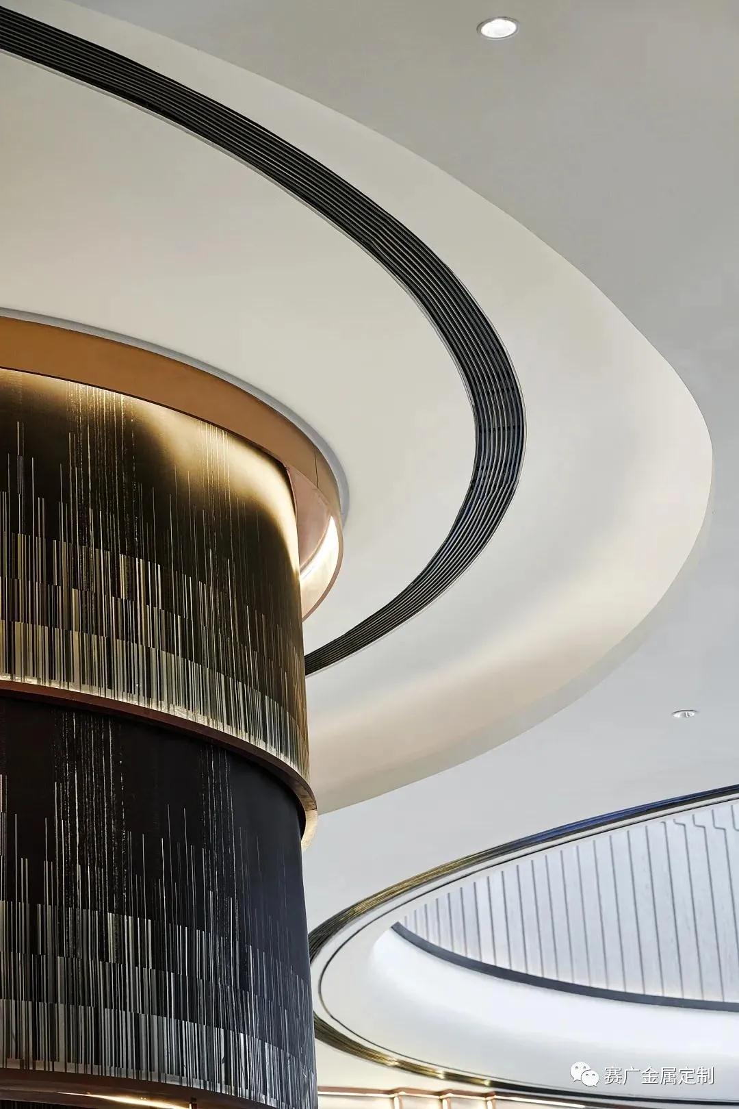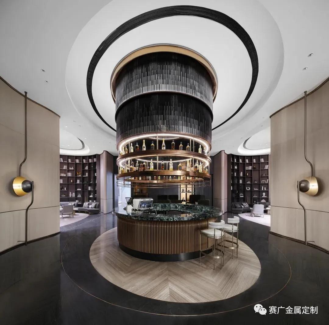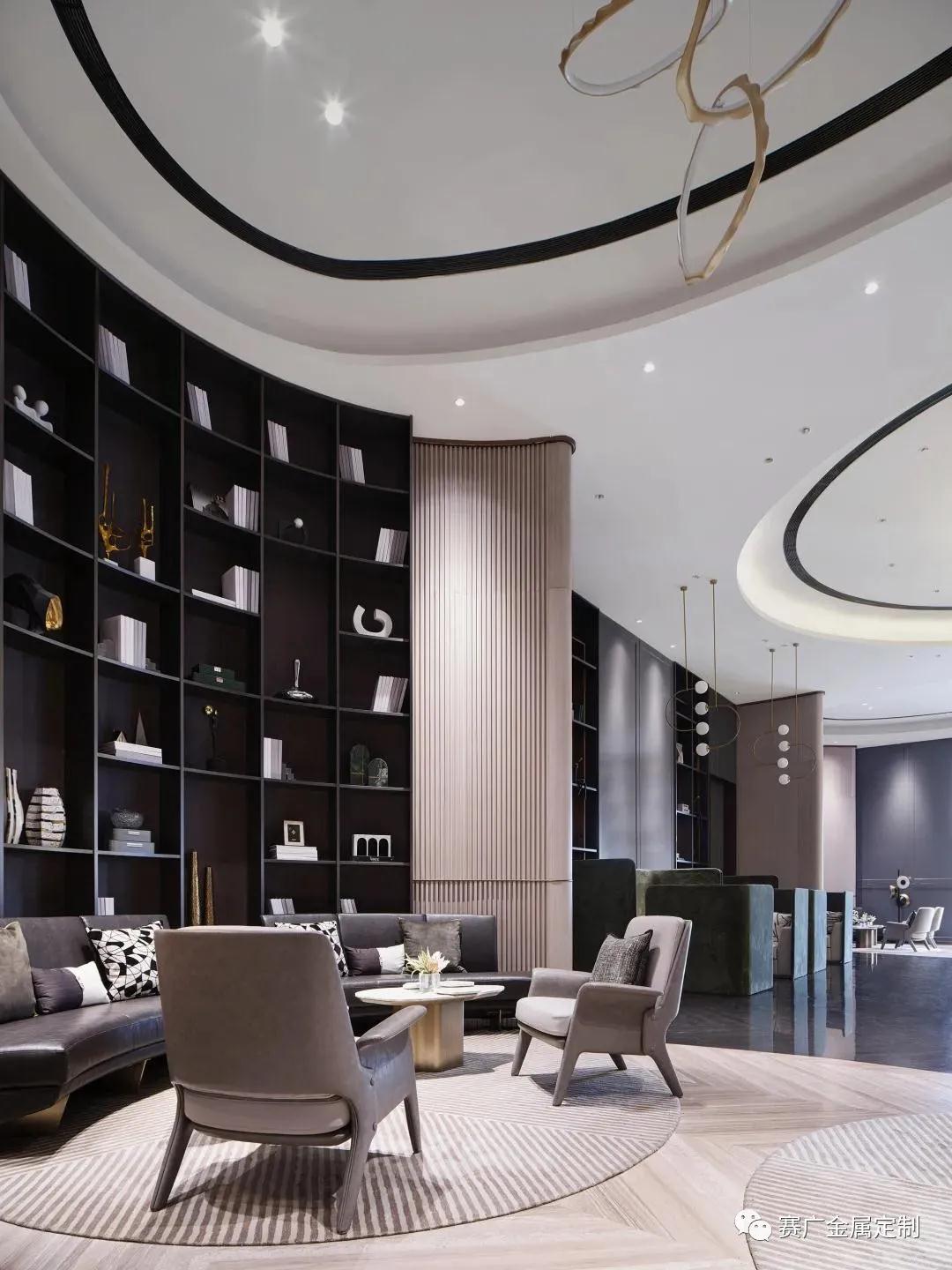 錯落有致的金屬板背景牆賦予(yǔ)空間張力,船型接待台(tái)置於一側,仿佛能看到這座城市中經年累積的海港(gǎng)文明在此上演,將身臨其境的人塑造為時(shí)間的體驗者,以設計語匯勾(gōu)勒即將綻放的美(měi)好生活。